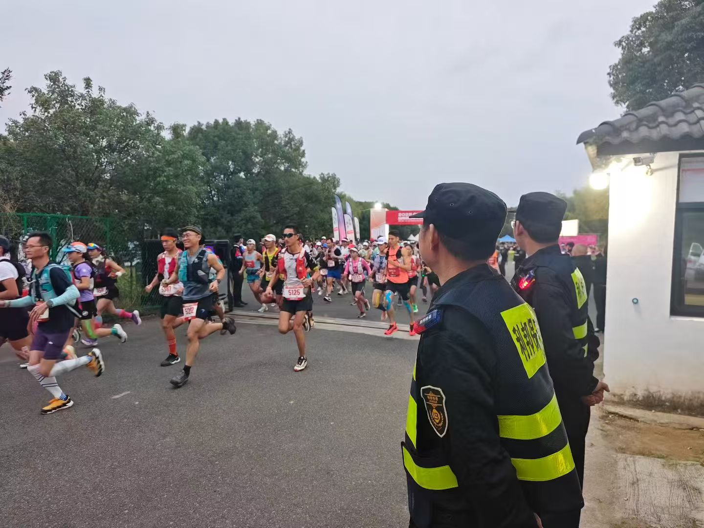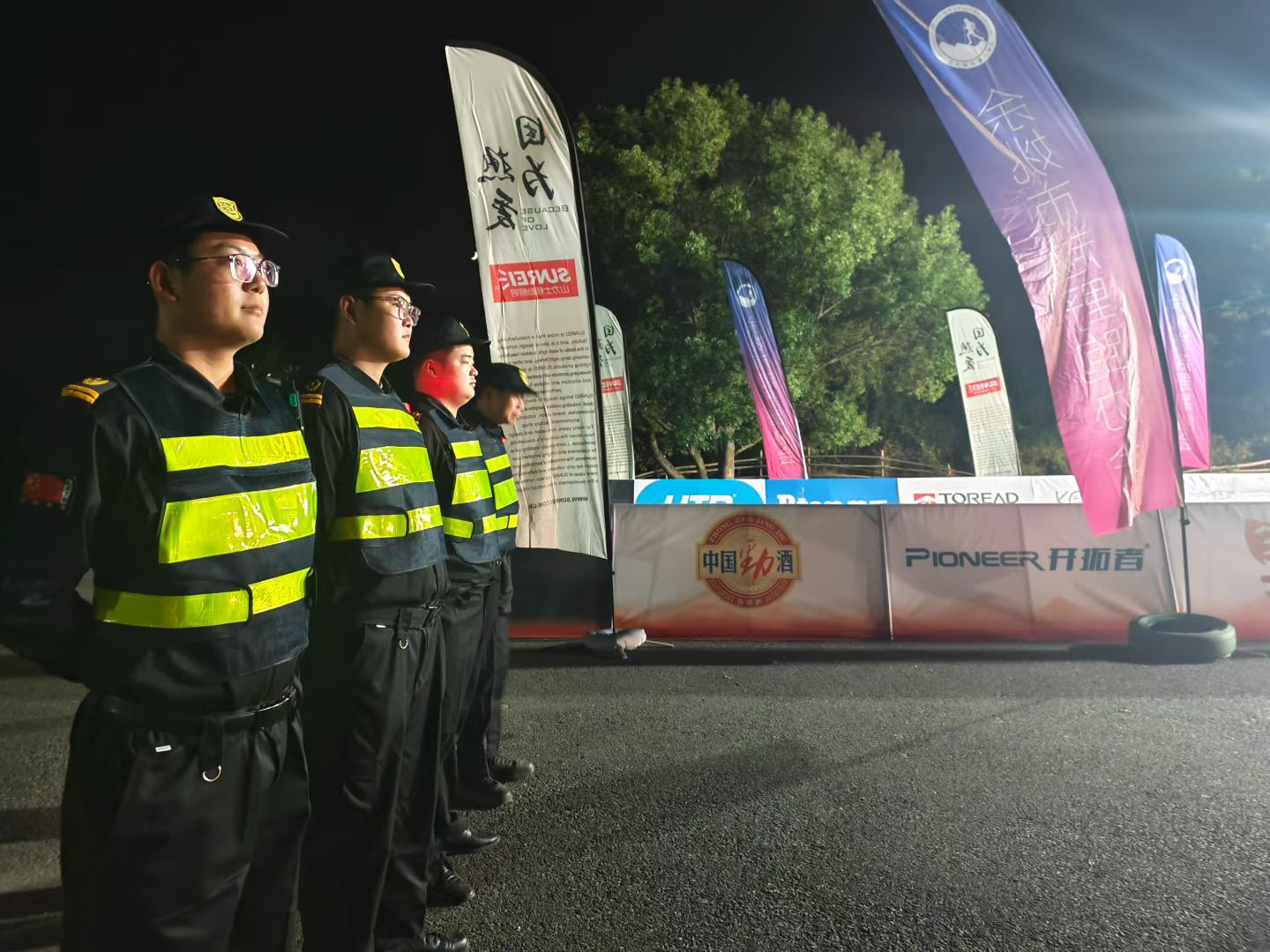 在山林深處,在黑夜籠罩的賽道上,保安人員堅(jiān)守崗位,確保選手們能夠安心比賽。